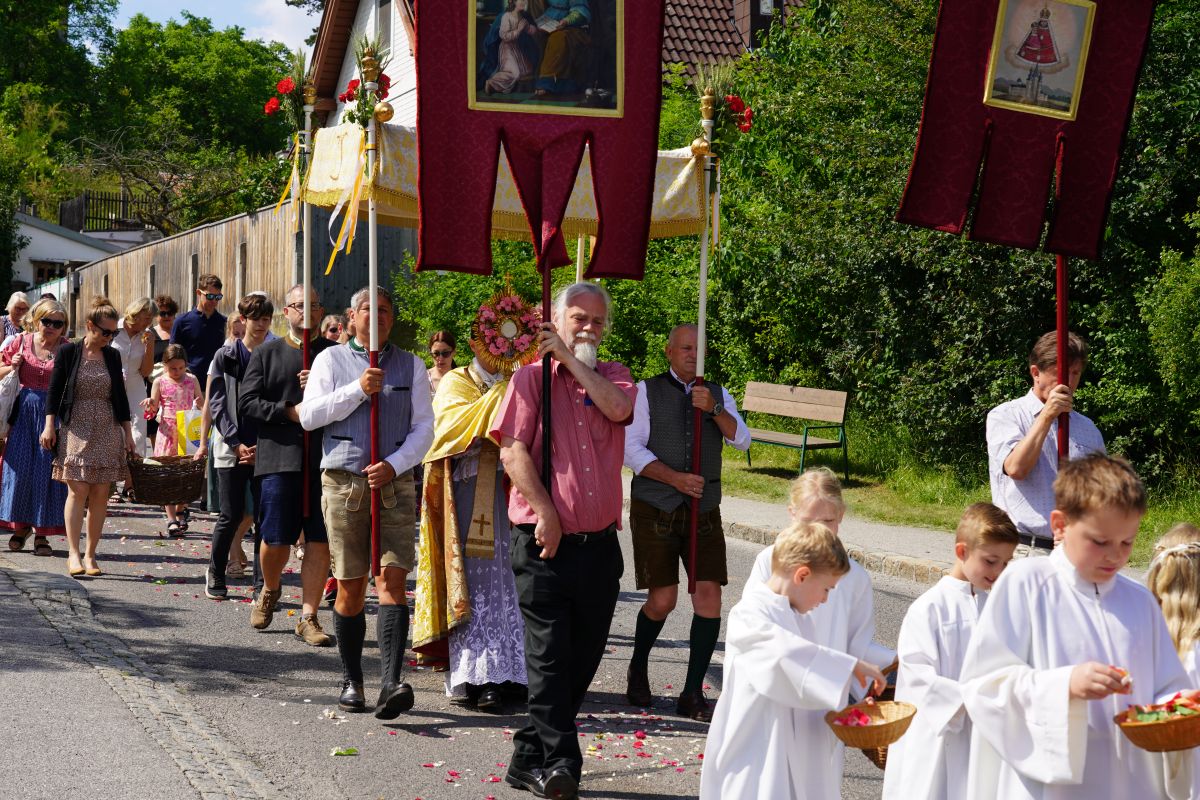 Begleitet vom Musikverein Hettmannsdorf-Würflach und der Freiwillige Feuerwehr Würflach Hettmannsdorf zogen wir bei Kaiserwetter mit dem Allerheiligsten über die vier Altäre in die Klamm. Dort haben wir beim Johannesbrunnen die neue Statue des hl. Johannes Nepomuk gesegnet. Eine große Freude waren die vielen Erstkommunionkinder, die heuer dabei waren und für Jesus auf den Weg Blumen gestreut haben. Fronleichnam zeigt uns, dass Jesus Christus als unser Erlöser in der Hl. Hostie ganz nahe ist. Vergelt's Gott allen, die gekommen und mitgeholfen haben!